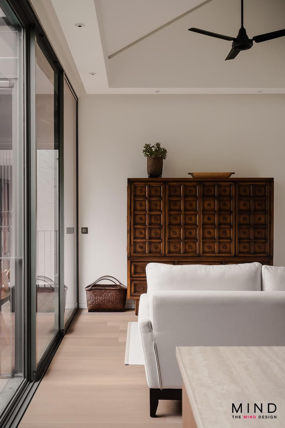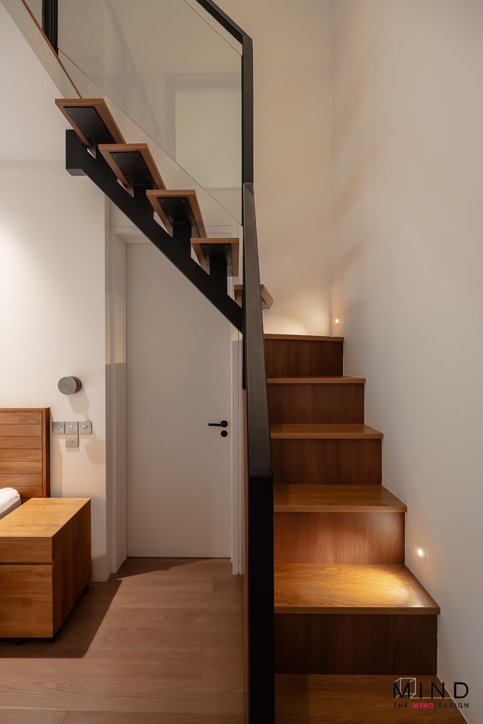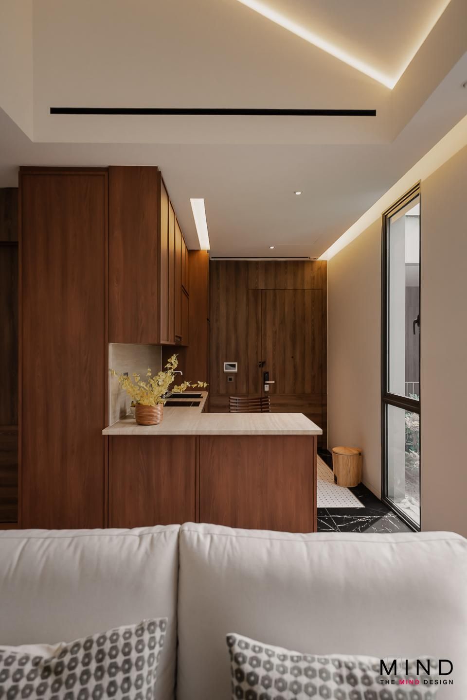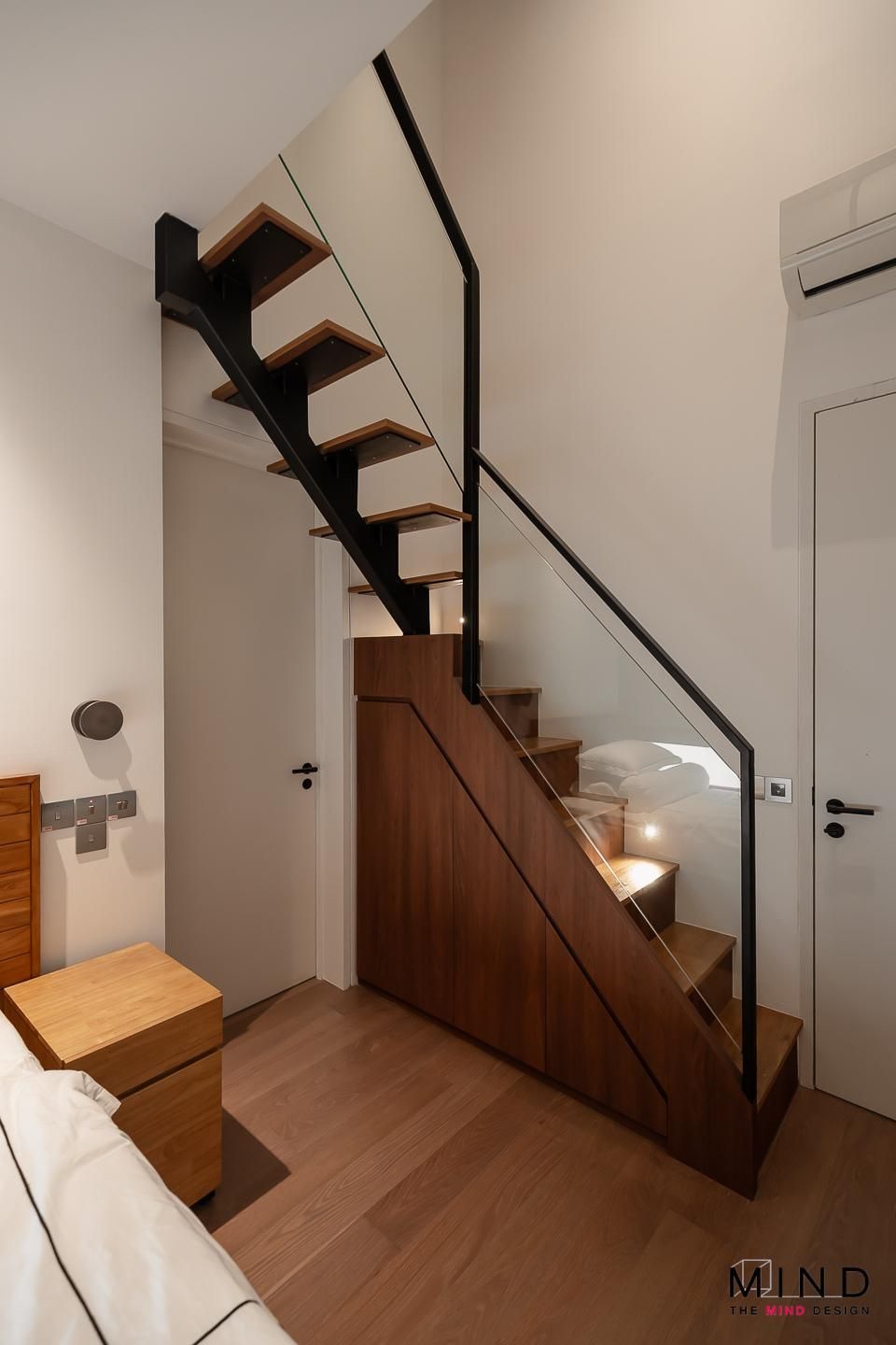 This modern condo with loft design in Singapore blends functionality with timeless style. Featuring clean architectural lines, warm wood accents, and soft ambient lighting, the space feels both sophisticated and inviting. Natural light flows seamlessly through the sliding glass doors, enhancing the airy, open-plan living area.