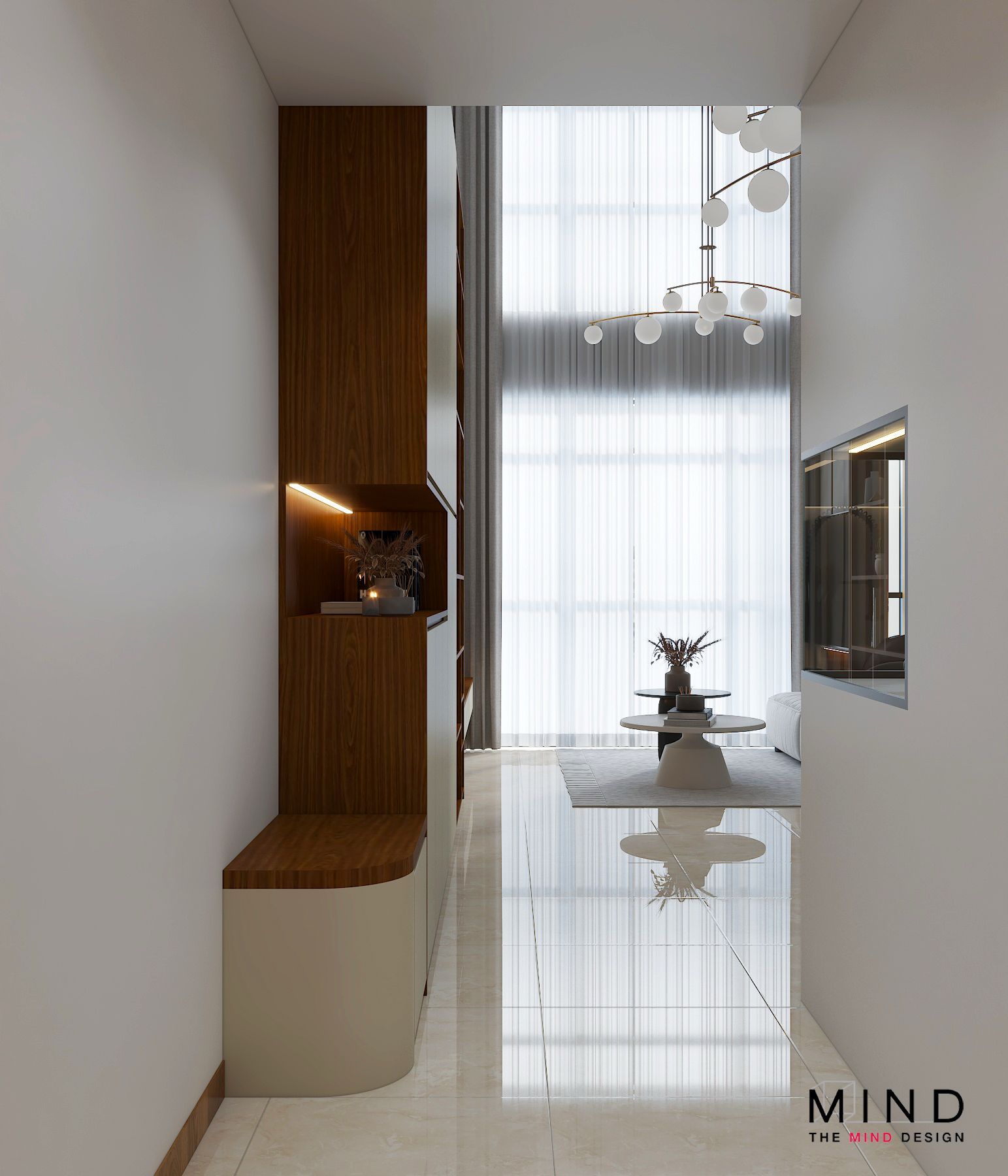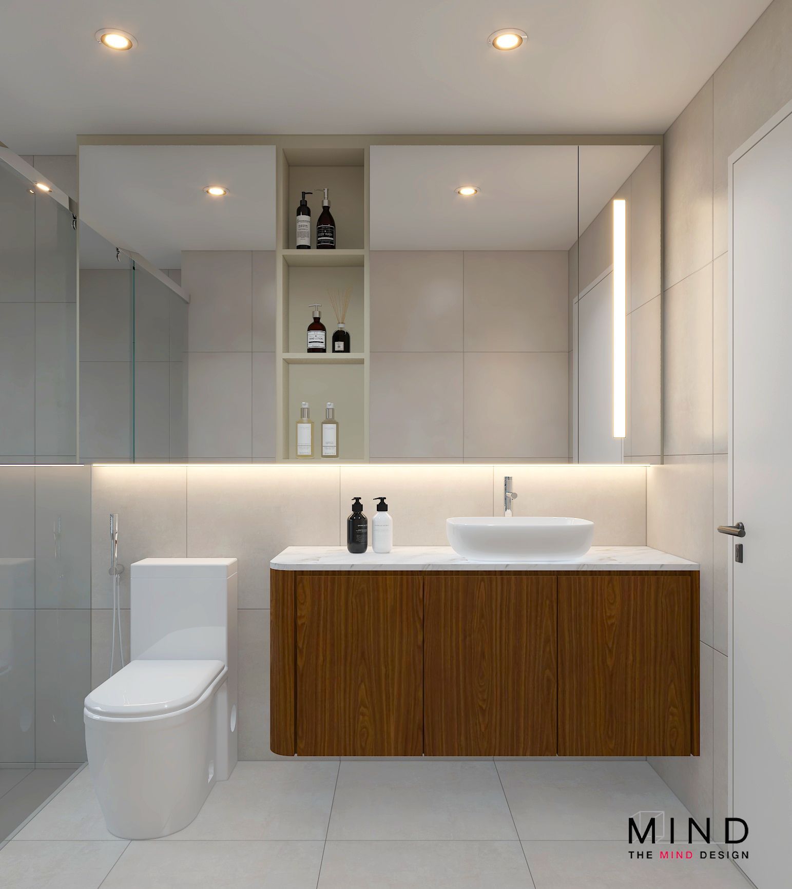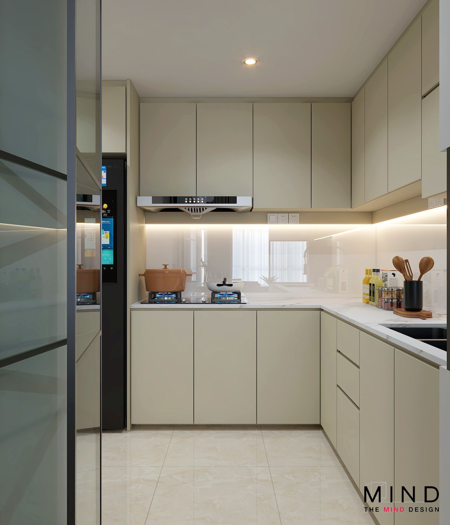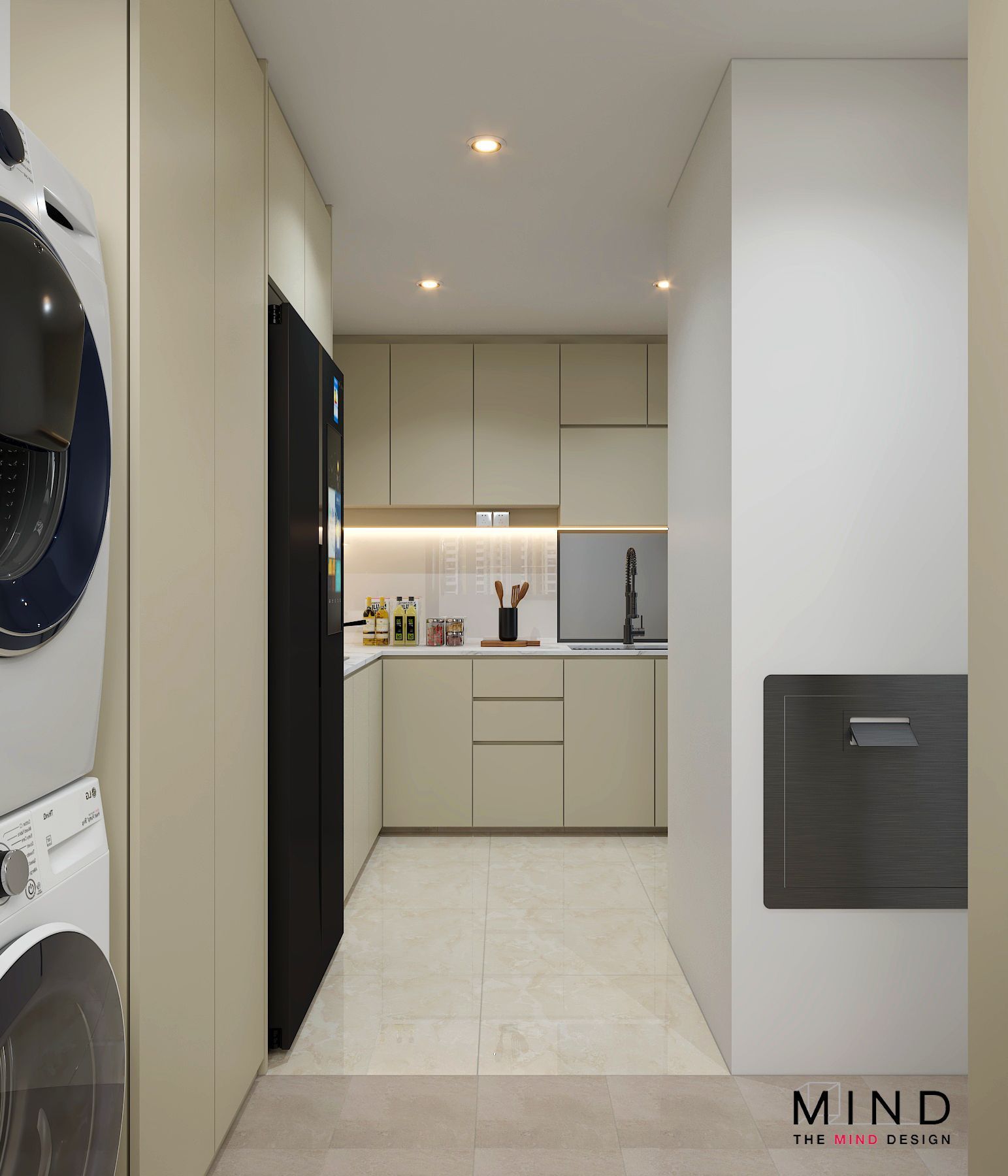This refined interior captures the true essence of contemporary luxury condo interior design in Singapore. From the sleek marble finishes to the warm, illuminated wooden shelves, every detail is crafted to exude sophistication and style. The clean built-ins, functional storage, and soft neutral palette create a neat and spacious environment—perfect for modern city living.