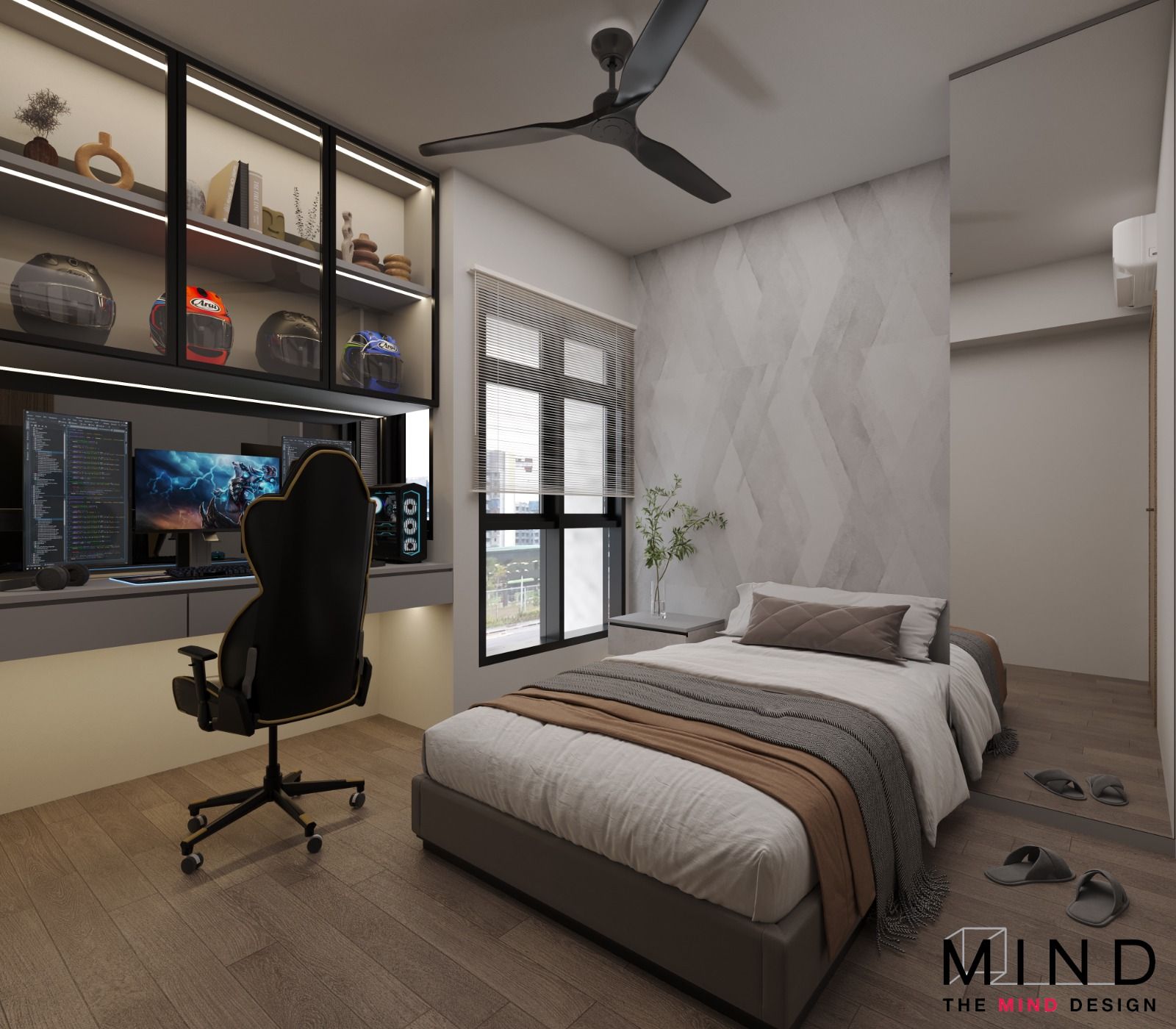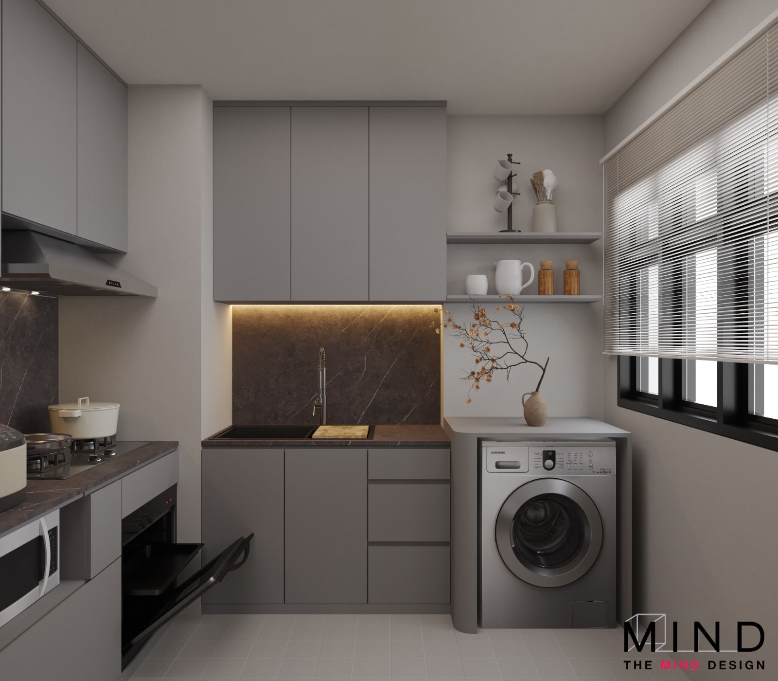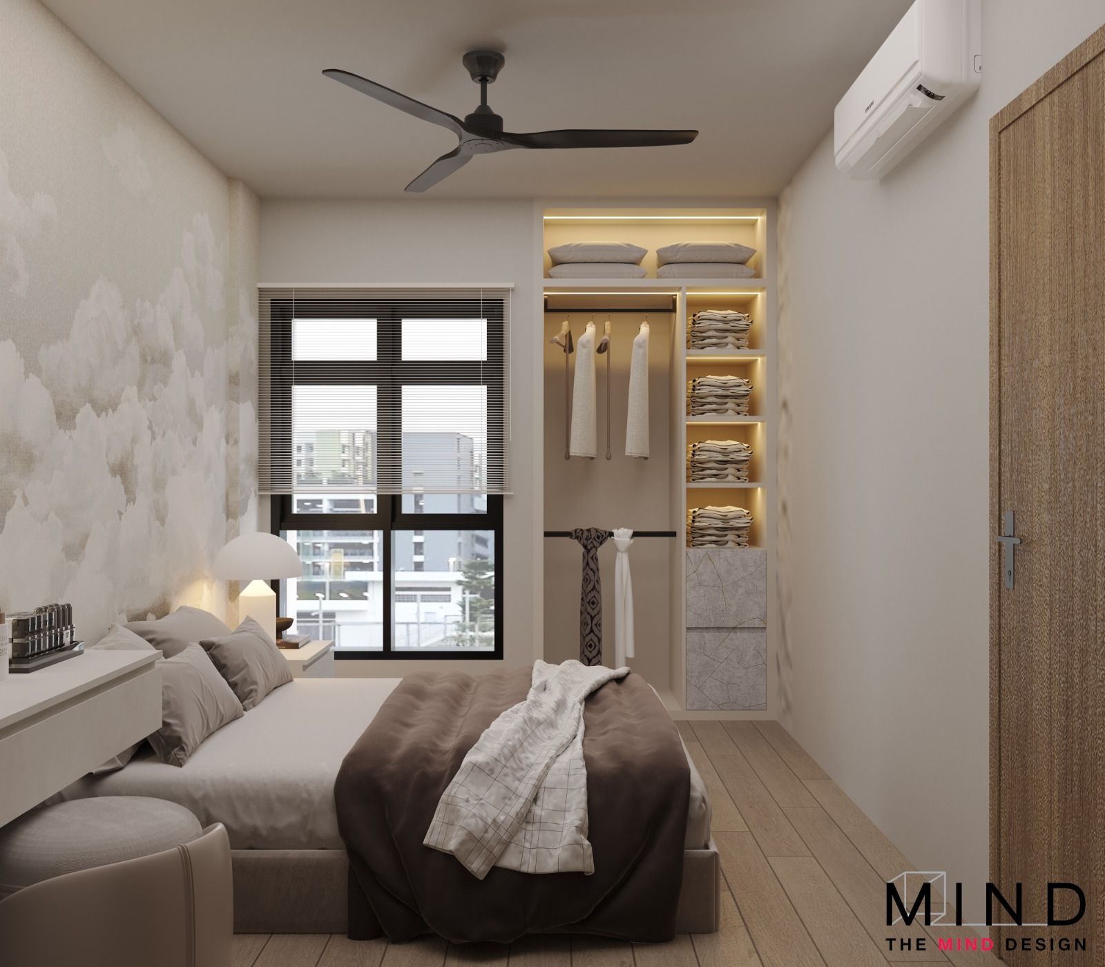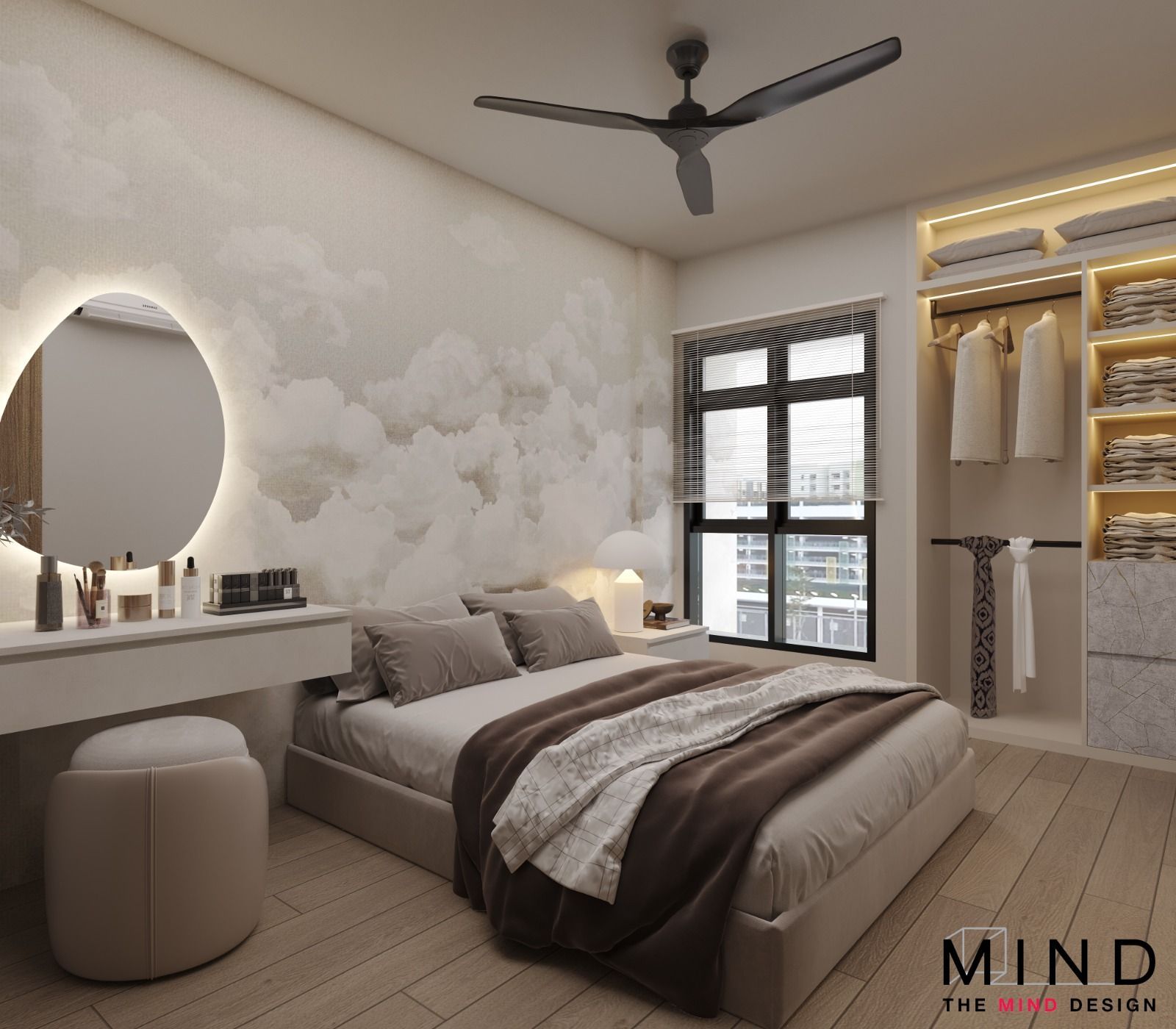This serene interior by THE MIND DESIGN brings together clean lines, soft textures, and warm lighting to craft a calming sanctuary in the heart of the city. From the cloud-inspired feature wall in the bedroom to the streamlined living space, every detail reflects understated luxury and thoughtful functionality.