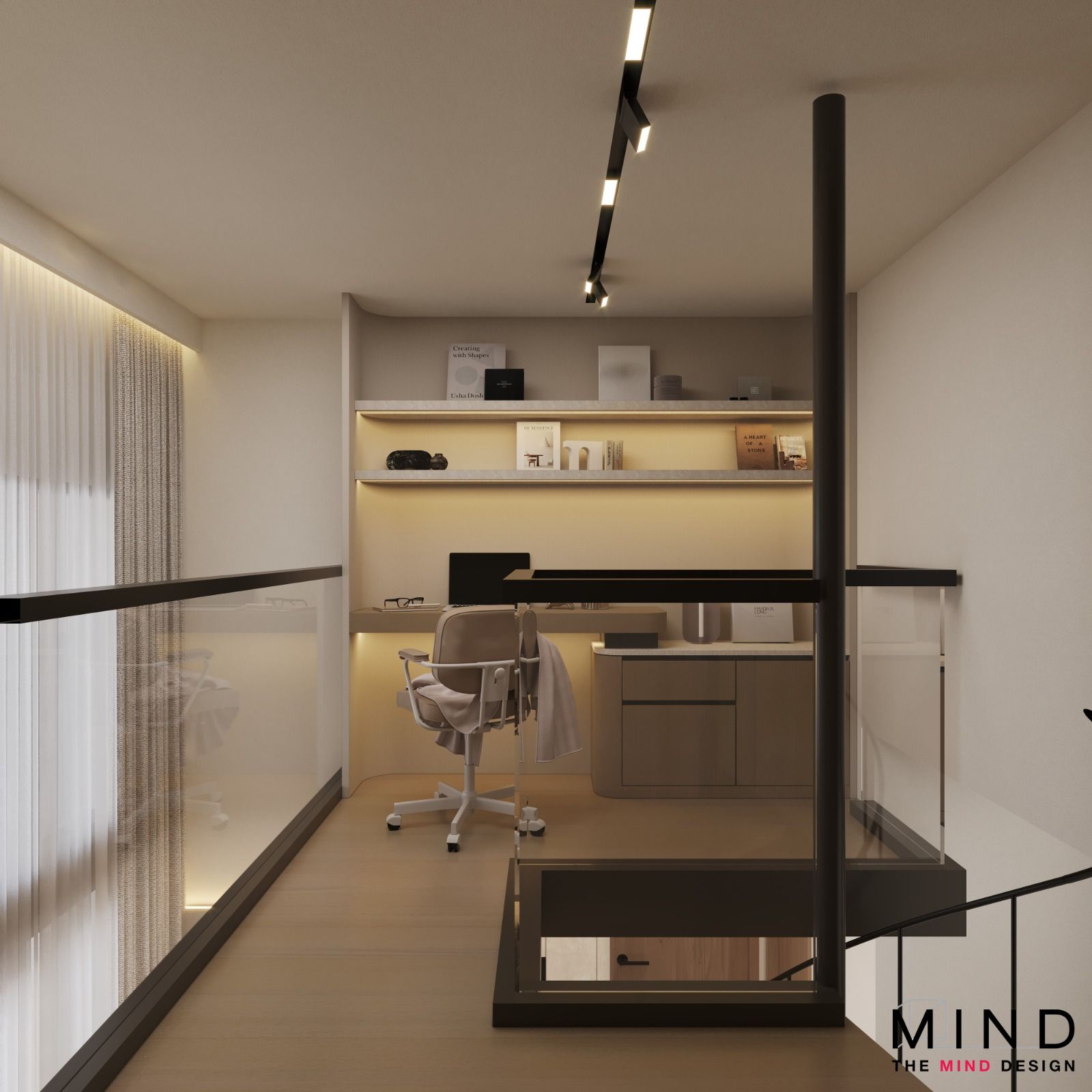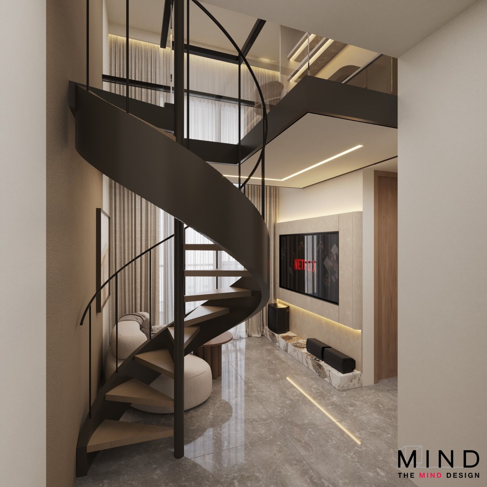 Modern luxury meets everyday comfort in this stylish condo living room. Featuring a sleek spiral staircase, marble TV wall, and ambient lighting, this space redefines interior design in Singapore. Designed by The Mind Design, your go-to loft specialist.