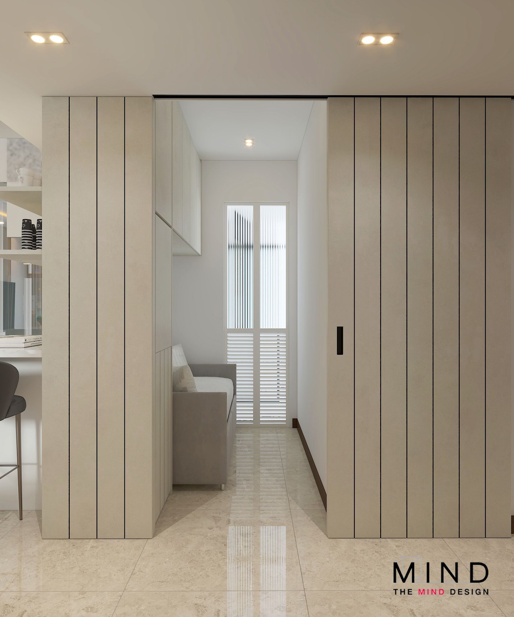 We utilized a refined, neutral palette, sophisticated fluted wall panels, and strategic cove lighting to create depth and warmth. This is contemporary living redefined: organized, elegant, and perfectly tailored.