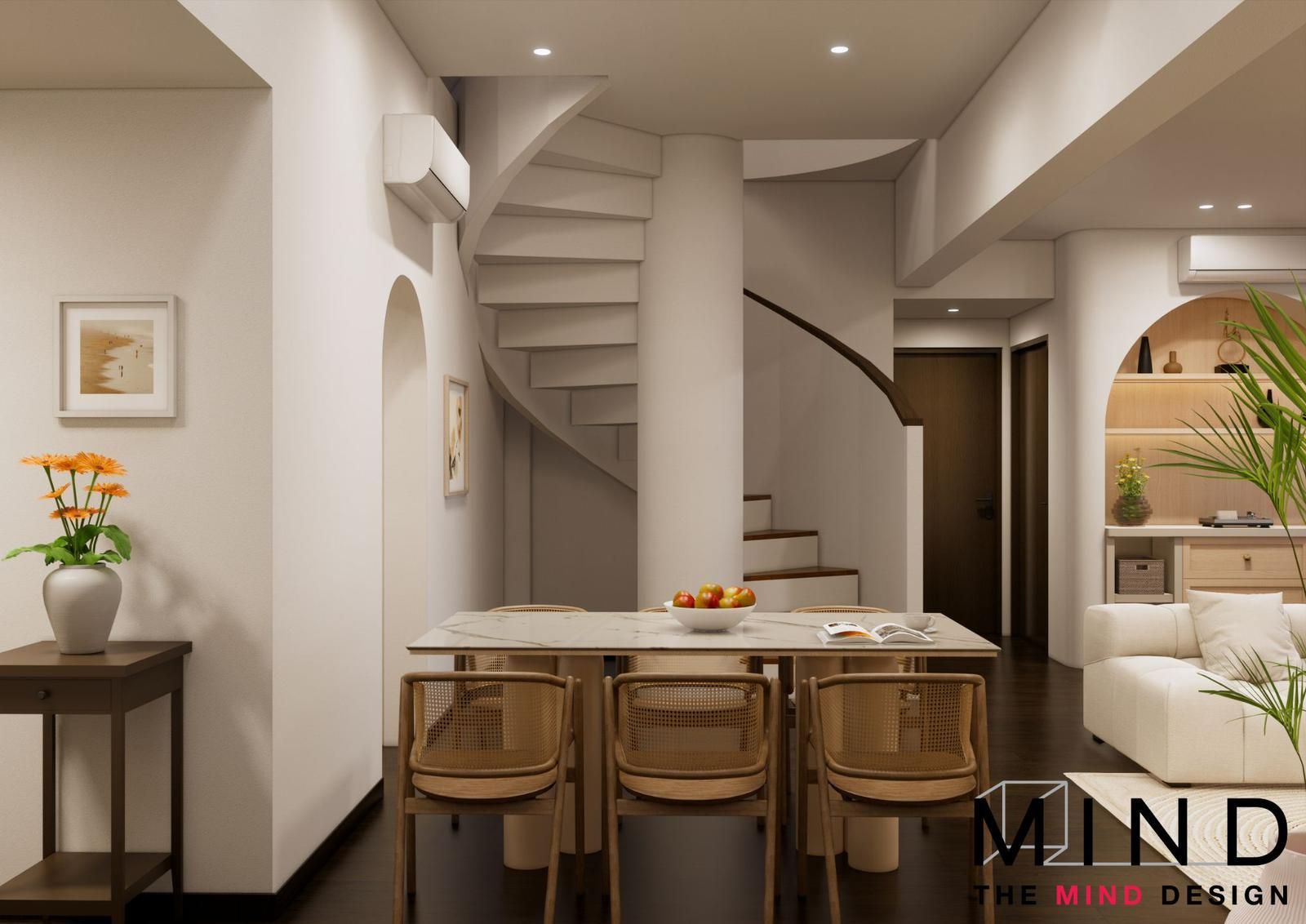 Introducing a stunning view from our Penthouse Loft project at Stratford Court! The Mind Design transformed this multi-level space, making the striking spiral staircase the elegant centerpiece of the dining area.
