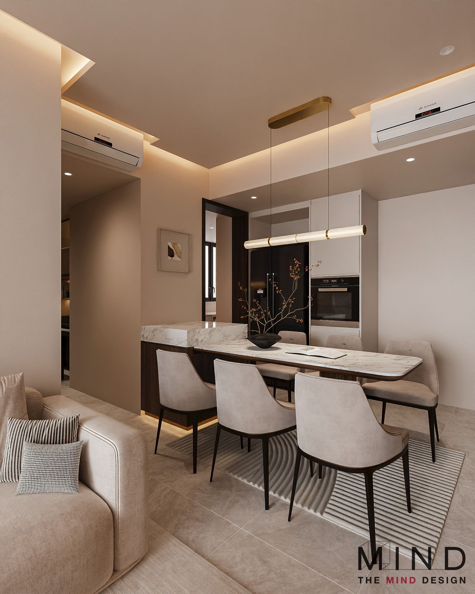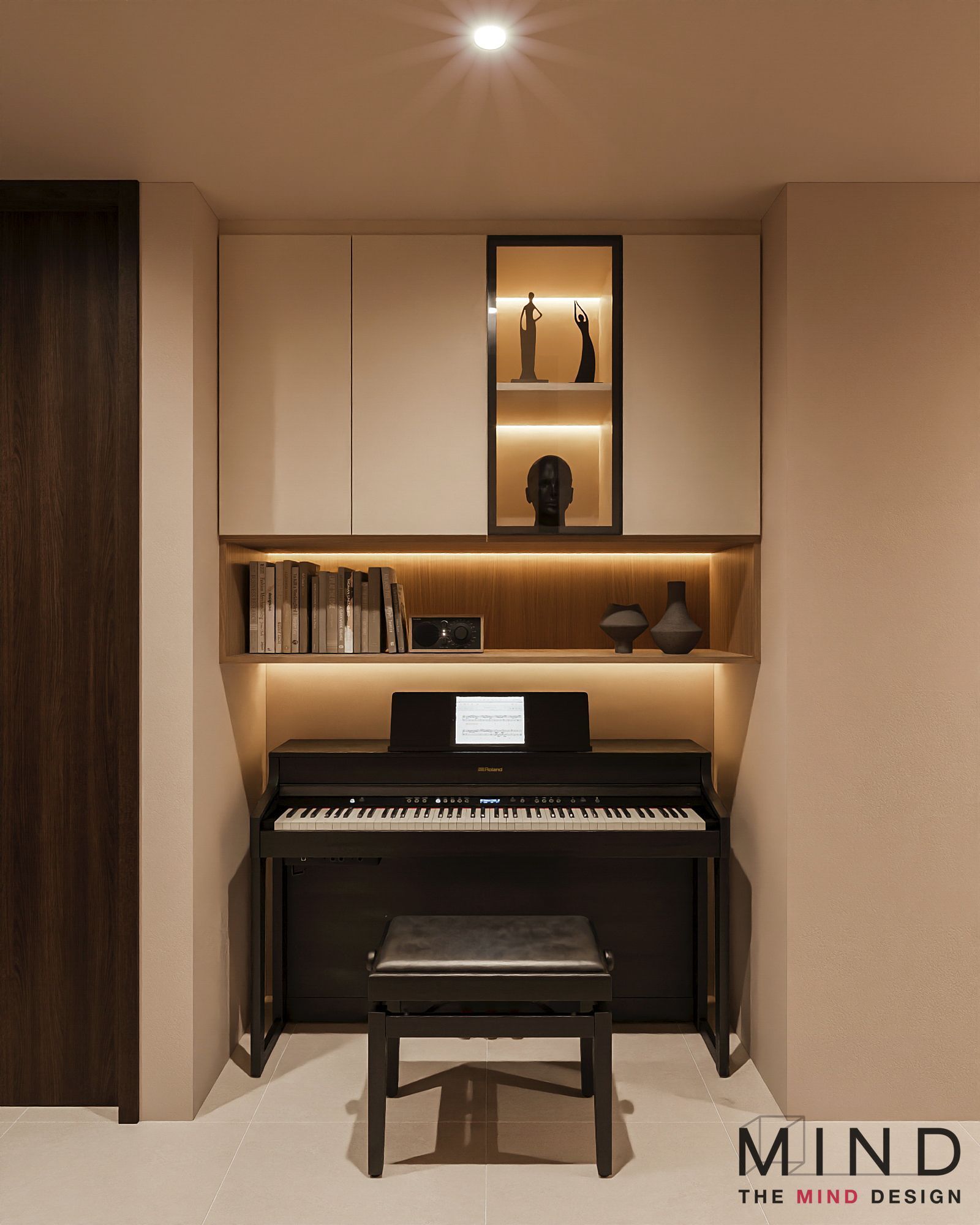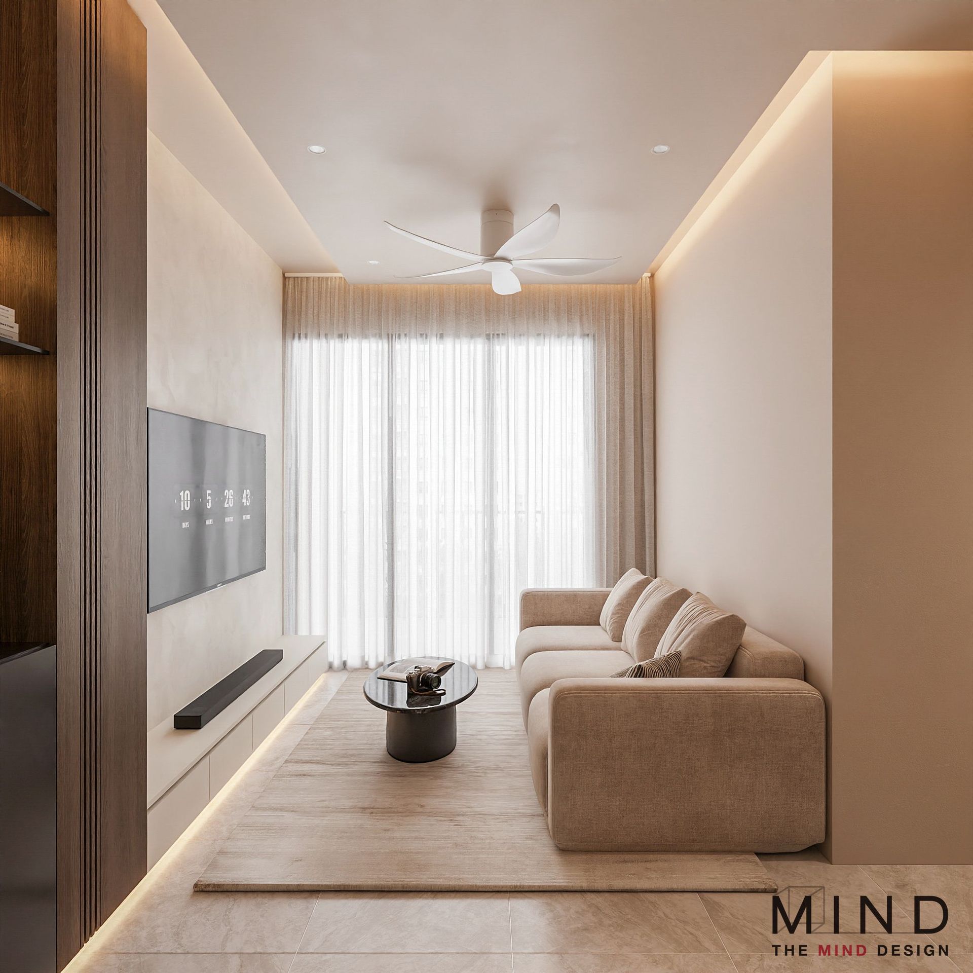 Functional and elegance, sophisticated TV feature wall with breathtaking, double-volume condo loft with seamless glass railings and illuminated wooden stairs. Bright, open-concept layouts and bespoke cabinetry—ranging from warm, illuminated living room niches to bold, industrial-style black shelving units with integrated LED strips—keep these homes looking flawless and clutter-free.