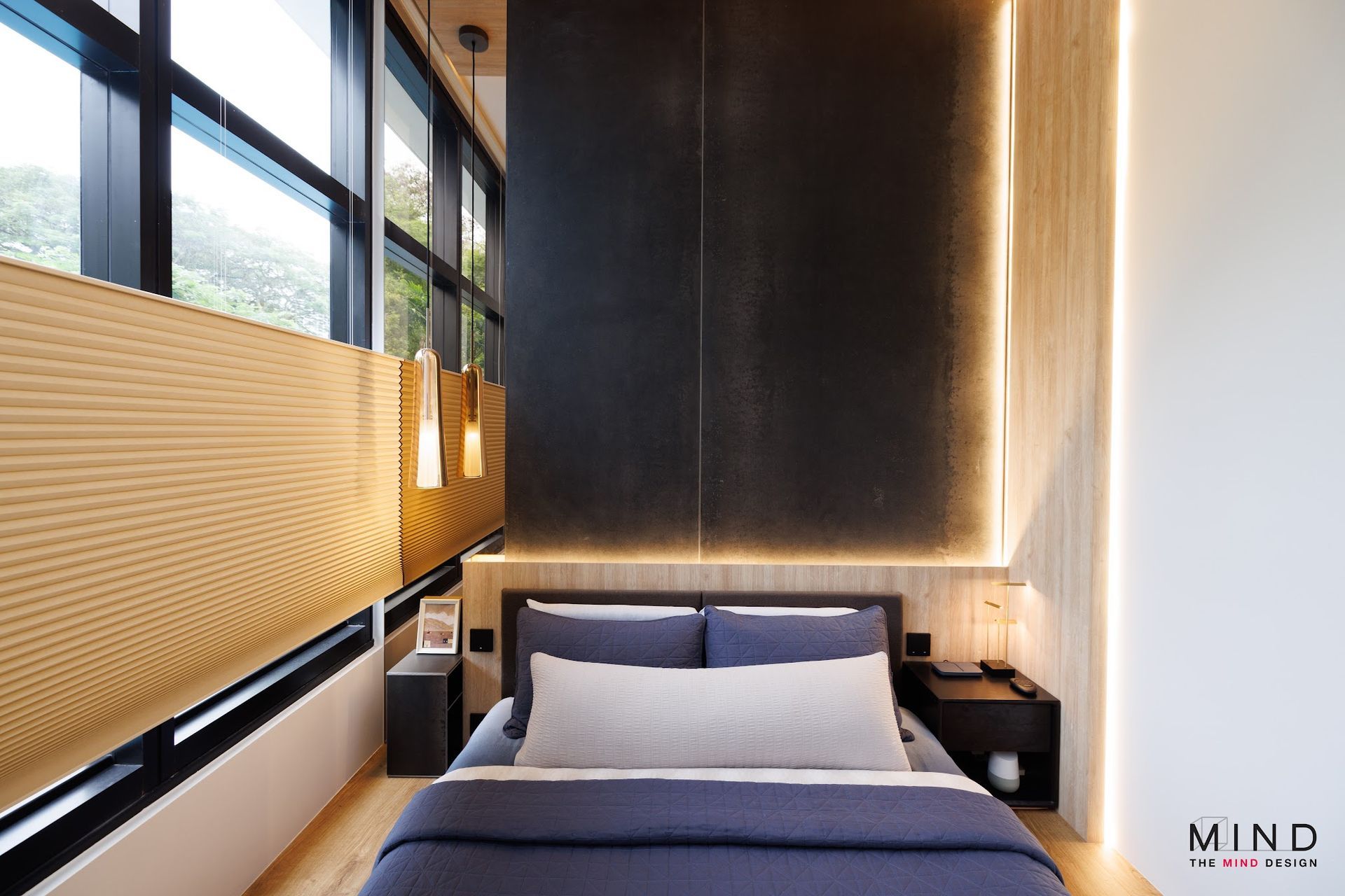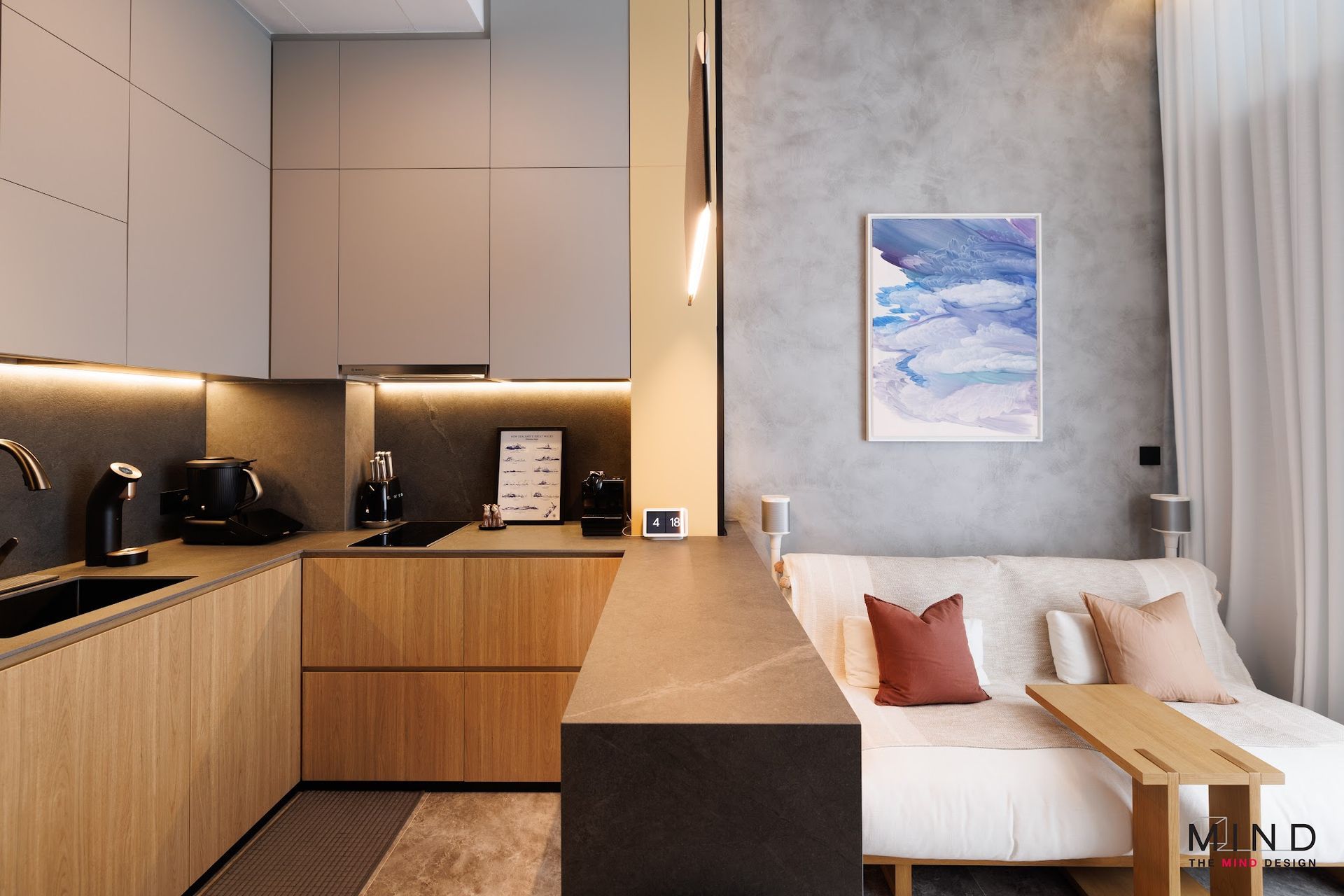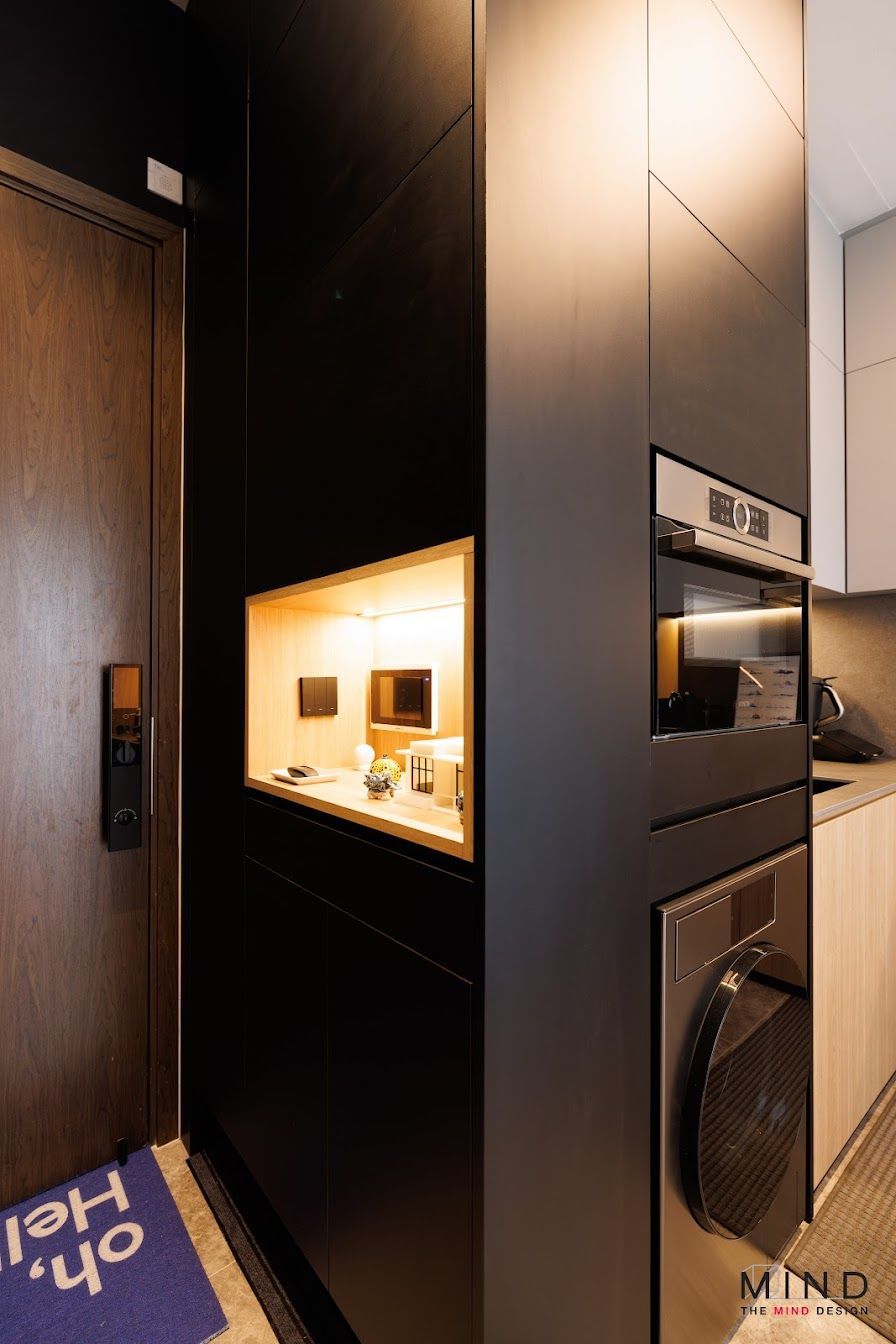 This project demonstrates the power of smart integration, where a sleek, stone-topped kitchen island transitions seamlessly into a cozy living sanctuary defined by textured concrete-effect walls and warm timber cabinetry. By utilizing a clean, linear layout and strategic under-cabinet lighting, we’ve transformed a compact footprint into a high-functioning home that feels both expansive and intimate. It is a perfect example of how thoughtful design can maximize every square foot of a premium Singapore condo without compromising on modern sophistication.