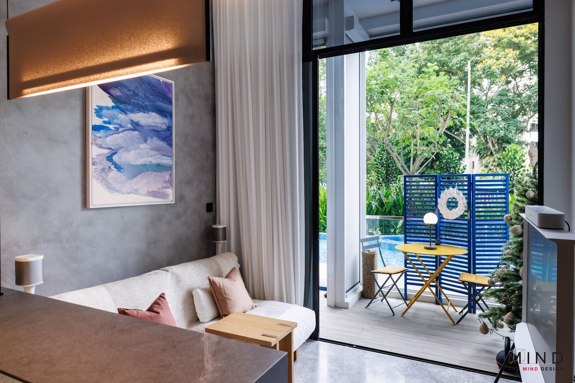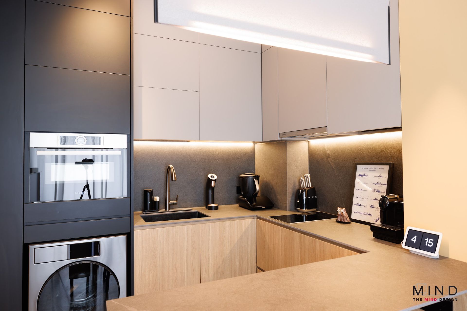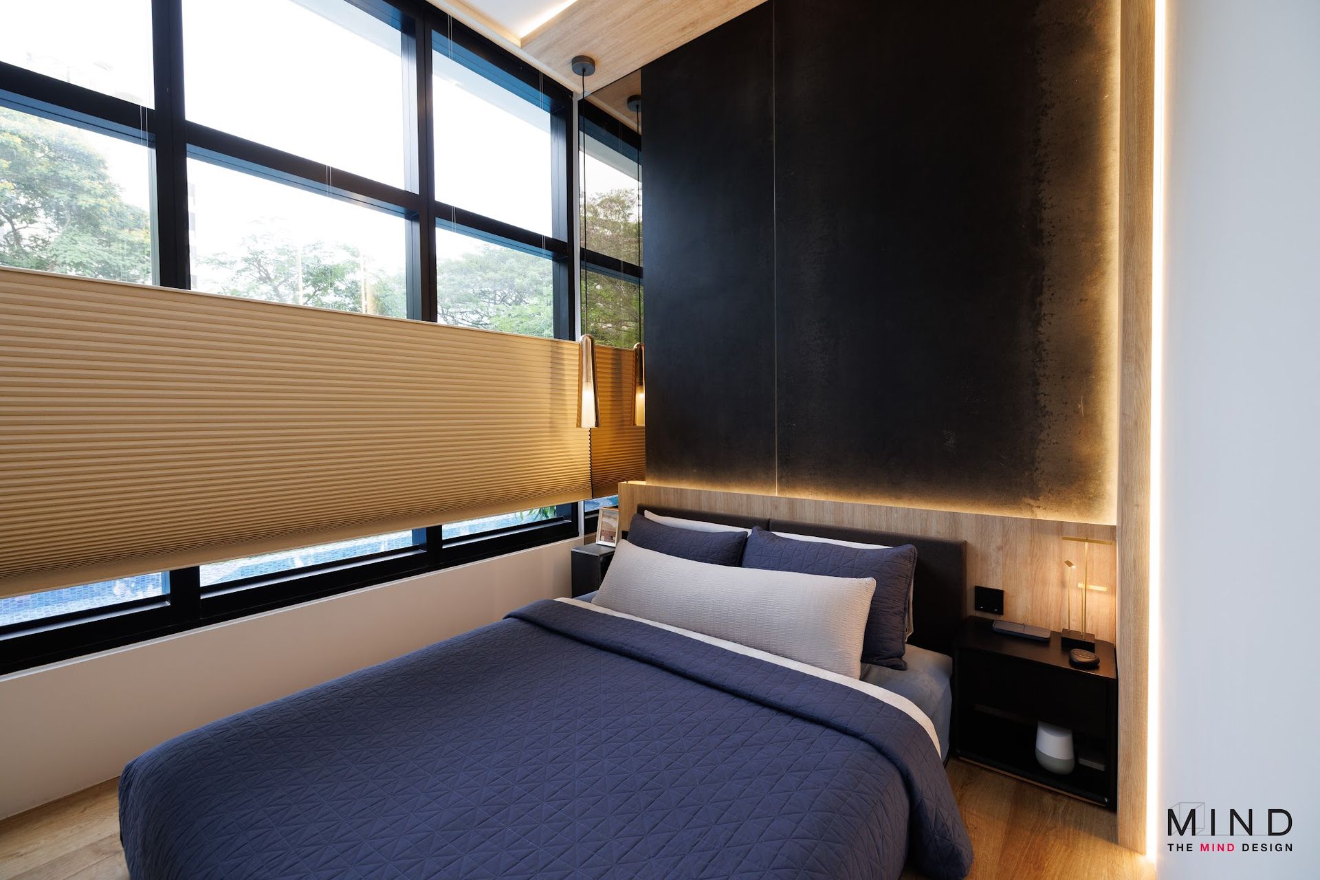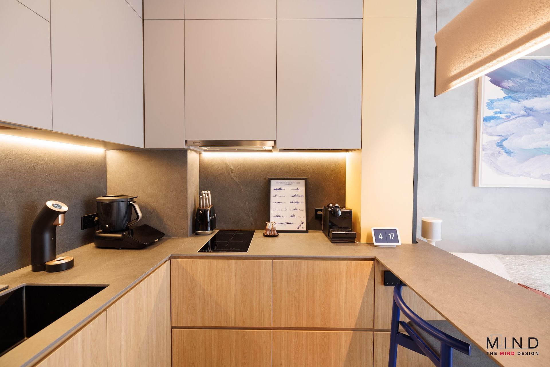 This project demonstrates the power of smart integration, where a sleek, stone-topped kitchen island transitions seamlessly into a cozy living sanctuary defined by textured concrete-effect walls and warm timber cabinetry. By utilizing a clean, linear layout and strategic under-cabinet lighting, we’ve transformed a compact footprint into a high-functioning home that feels both expansive and intimate. It is a perfect example of how thoughtful design can maximize every square foot of a premium Singapore condo without compromising on modern sophistication.