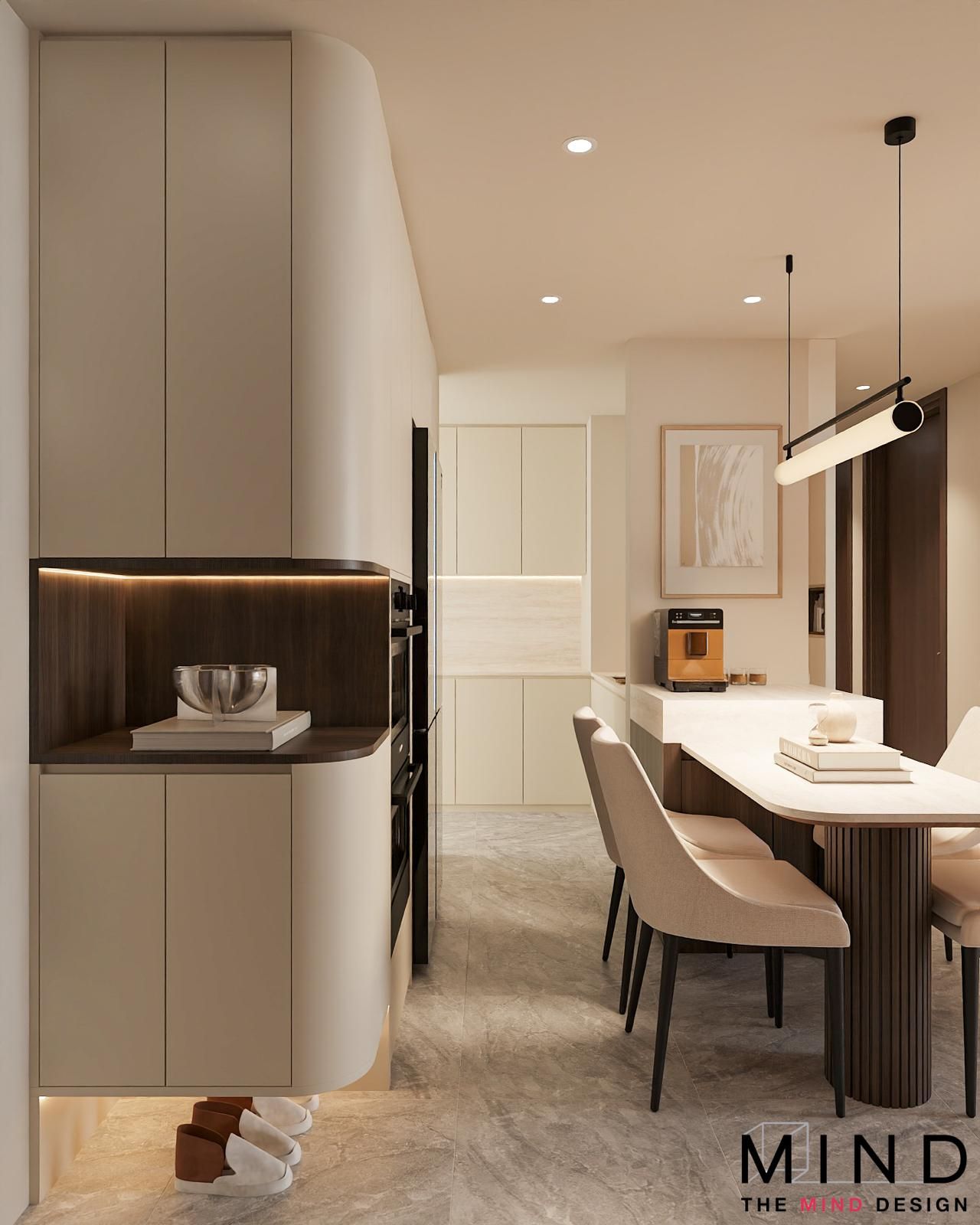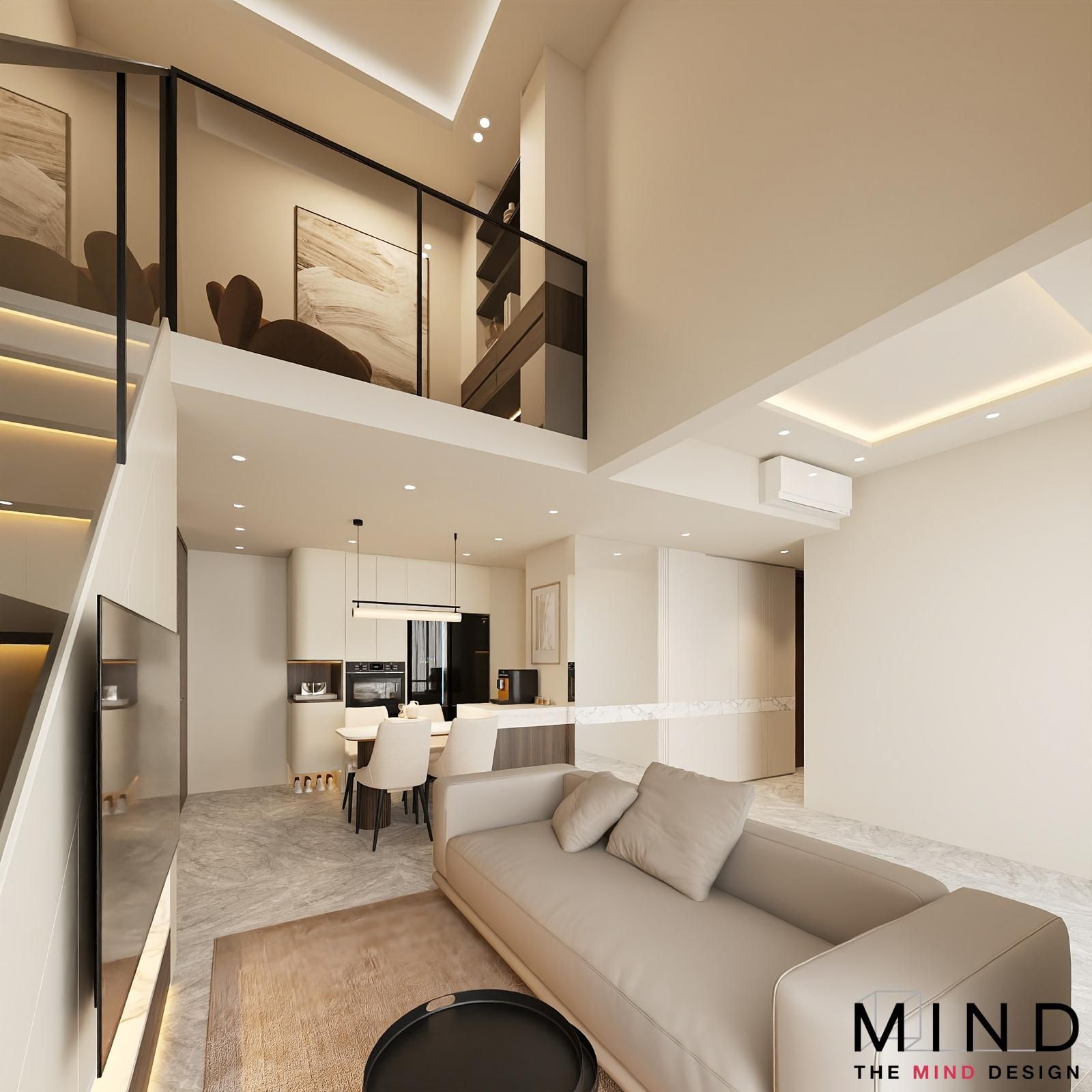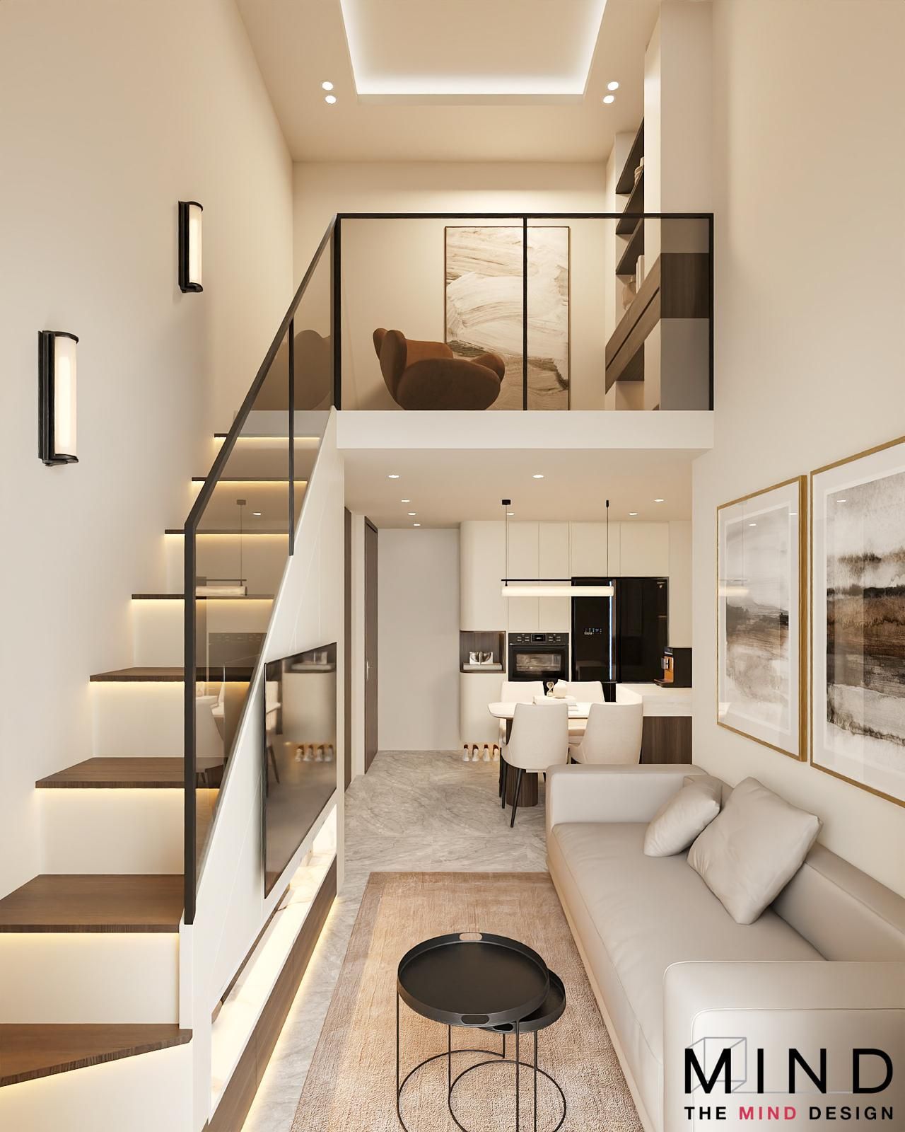 This stunning loft transformation showcases how we turn high-ceiling volumes into a seamless blend of functionality and sophisticated design. We’ve optimized the vertical space to create a home that feels both grand and incredibly intimate. The warm, neutral palette and soft ambient lighting across the living and dining zones ensure that every corner of this open-concept layout radiates a contemporary, high-end glow.